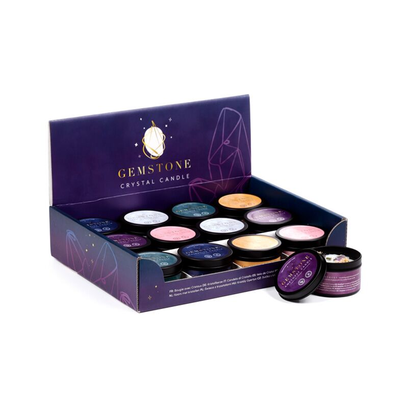 Lumânare în Ceară de Soia - în Cutie - Bucăți de pietre prețioase