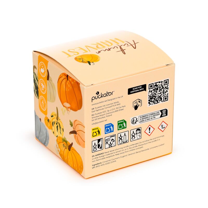 https://www.puckator-angro.ro/cand101-candela-parfumata-borcan-in-forma-de-dovleac-autumn-harvest.htmlCAND101Candelă parfumată - Borcan în Formă de Dovleac - Autumn Harvest<p>Candelă parfumată - Borcan în Formă de Dovleac - Autumn Harvest</p><ul><li><strong>Material:</strong> Sticlă, Plută, Ceară de Soia (30%), Parafină (70%), Parfum de Candele(5%)</li><li><strong>Timp estimativ de ardere:</strong> 8 - 9 Ore</li><li><strong>Cruelty Free:</strong> Da</li><li><strong>Fără Ulei de Palmier:</strong> Da</li><li><strong>Fără Parabeni:</strong> Da</li><li><strong>SLS Free (Sodium Lauryl Sulphate):</strong> Da</li><li><strong>Phthalate Free:</strong> Da</li><li><strong>Informații pentru siguranță:</strong> Îndepărtați dopul din plută înainte de a folosi. Nu schimbați fitilul când produsul este încă aprins sau cald. Toate informațiile produsului se găsesc pe ambalaj</li></ul><p><strong>Informații suplimentare:</strong></p><ul><li><strong>Vrei mai multe informații pentru a plasa comanda de pe site?</strong> Citește <a href="/centru-de-consiliere" target="_blank" title="ghidul pentru cumpărare Puckator"> ghidul nostru pentru cumpărare.</a></li></ul></ul><p><img src="{{media url="wysiwyg/Symbols/CRUELTYFREE.jpg";}}" alt="Cruelty Free Packaging Symbol|Puckator" width="100" height="100"><img src="{{media url="wysiwyg/Symbols/SLSFREE.jpg";}}" alt="SLS Free Packaging Symbol|Puckator" width="100" height="100"><img src="{{media url="wysiwyg/Symbols/PARABENFREE.jpg";}}" alt="Paraban Free Packaging Symbol|Puckator" width="100" height="100"><img src="{{media url="wysiwyg/Symbols/PHTHALATEFREE.jpg";}}" alt="Phthalate Free Packaging Symbol|Puckator" width="100" height="100"><img src="{{media url="wysiwyg/Symbols/PALMOILFREE.jpg";}}" alt="Palm Oil Free Packaging Symbol|Puckator" width="100" height="100"></p>https://www.puckator-angro.ro/media/catalog/product/C/A/CAND101_001_1753192420.jpg2.12instock4.242.12502.12Puckator000https://www.puckator-angro.ro/media/catalog/product/C/A/CAND101_001_1753192420.jpg194871725317259/Suporturi pentru Candele/Toamnă/Lichidare de Stoc/Reduceri Generale2025-06-30T14:56:19+0000