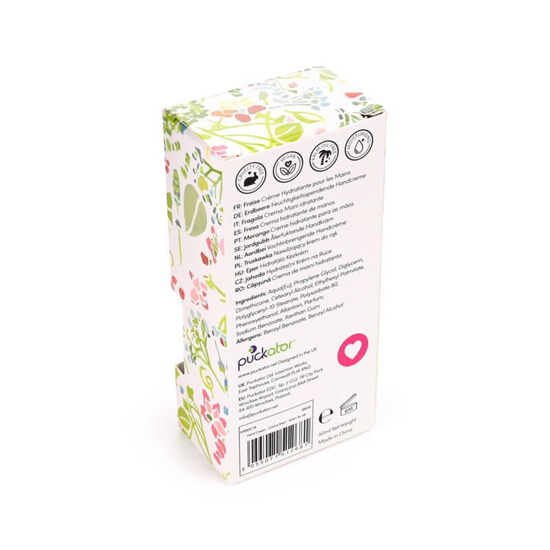 https://www.puckator-angro.ro/handc18-crema-idratanta-de-maini-50ml-flori-julie-dodsworth.htmlHANDC18Cremă Idratantă de Mâini 50ml - Flori - Julie Dodsworth<p>Cremă Idratantă de Mâini 50ml - Flori - Julie Dodsworth</p><ul><li><strong>Material:</strong> Polietilenă și Aluminiu (Tub), Polipropilenă (Capac) și Cremă de Mâini</li><li><strong>Parfumuri:</strong> Căpșuni</li><li><strong>Ingrediente:</strong> Toate ingredientele se găsesc pe eticheta ambalajului.</li><li><strong>Vegan:</strong> Da</li><li><strong>Fără Ulei de Palmier:</strong> Da</li><li><strong>Cruelty Free:</strong> Da</li><li><strong>CPNP:</strong> TBC</li></ul><p><strong>Informații suplimentare:</strong></p><ul><li><strong>Vrei mai multe informații pentru a plasa comanda de pe site?</strong> Citește <a href="/centru-de-consiliere" target="_blank" title="ghidul pentru cumpărare Puckator"> ghidul nostru pentru cumpărare.</a></li></ul></ul><p><img src="{{media url="wysiwyg/Symbols/CRUELTYFREE.jpg";}}" alt="Cruelty Free Packaging Symbol|Puckator" width="100" height="100"><img src="{{media url="wysiwyg/Symbols/PALMOILFREE.jpg";}}" alt="Palm Oil Free Packaging Symbol|Puckator" width="100" height="100"><img src="{{media url="wysiwyg/Symbols/VEGAN.jpg";}}" alt="Vegan Packaging Symbol|Puckator" width="100" height="100"></p>https://www.puckator-angro.ro/media/catalog/product/H/A/HANDC18_001_1763375076.jpg1.76instock1.761.7600Puckator000https://www.puckator-angro.ro/media/catalog/product/H/A/HANDC18_001_1763375076.jpg18291/Strugurele și Balsamuri de Buze/Tropical Paradise & Botanical/Julie Dodsworth/Creme de Mâini2025-06-11T15:36:54+0000