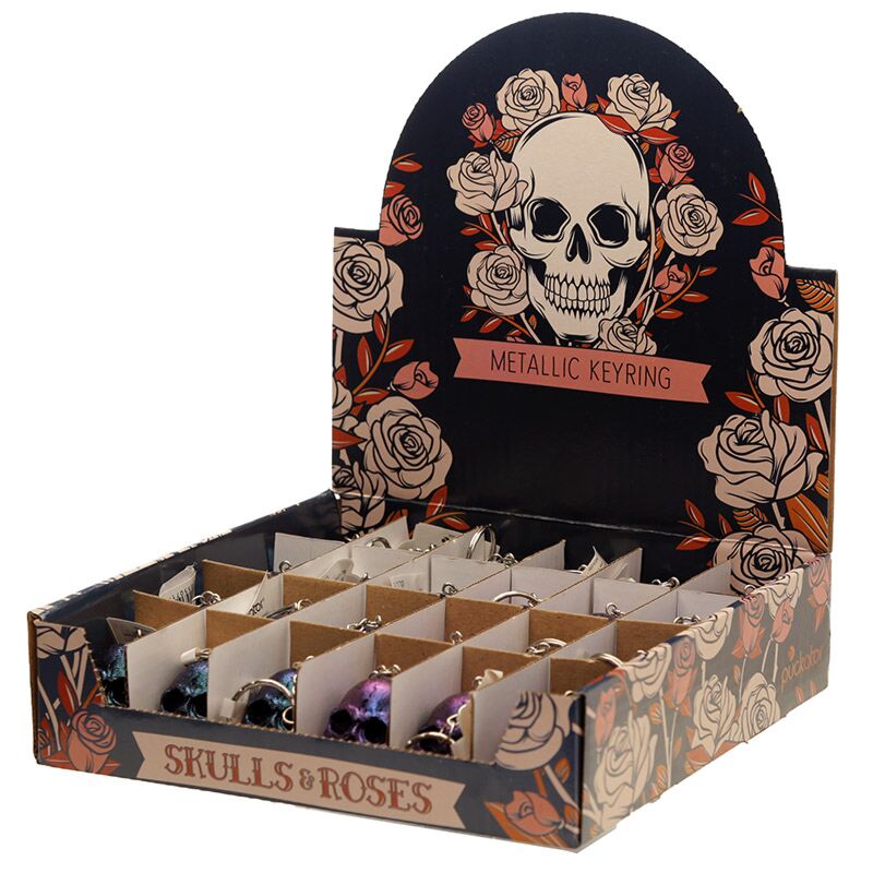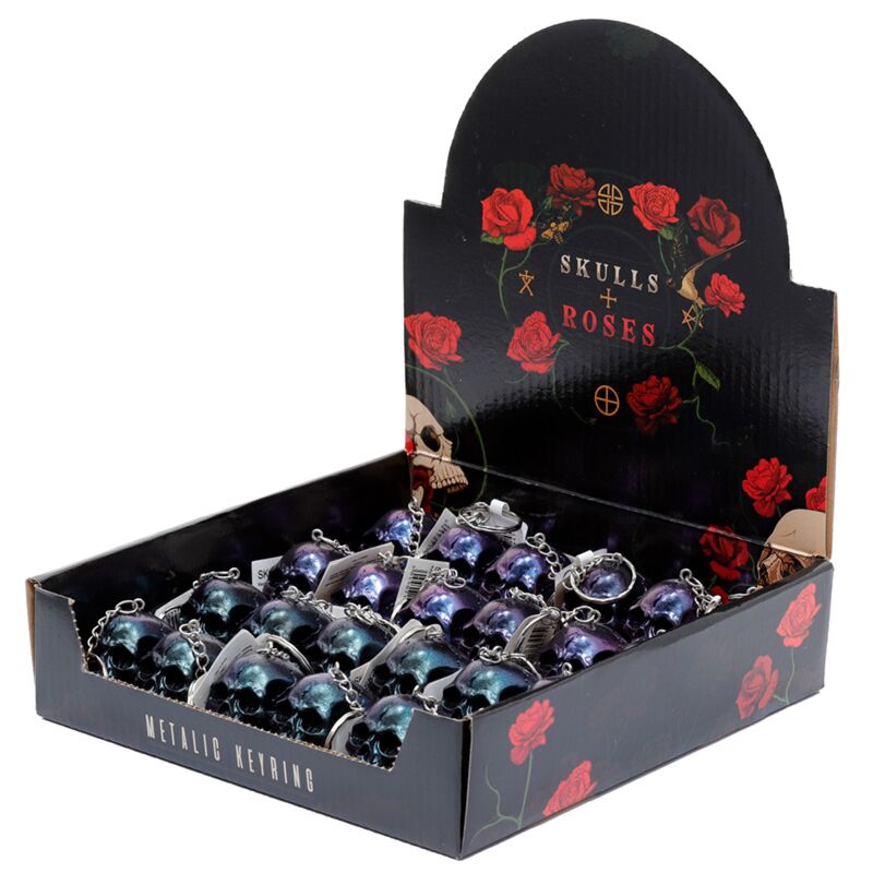 Breloc din Rășină - Cranii și Trandafiri Metalici - Skulls & Roses