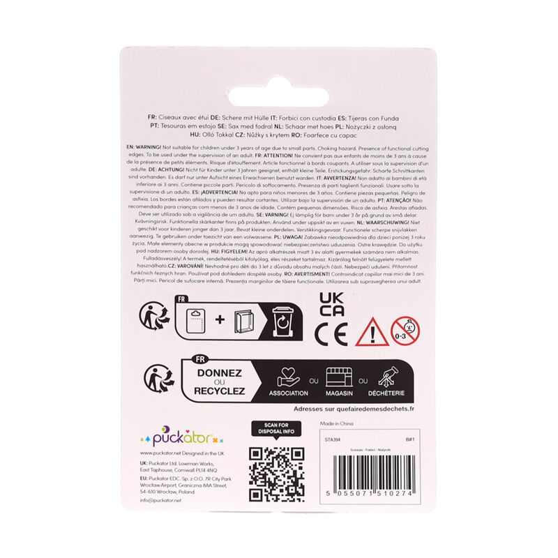 https://www.puckator-angro.ro/sta394-foarfece-pentru-copii-cu-custodie-magnet-adoramals.htmlSTA394Foarfece pentru Copii cu Custodie Magnet - Adoramals<p>Foarfece pentru Copii cu Custodie Magnet - Adoramals</p><ul><li><strong>Material:</strong> Oțel Inoxidabil, ABS, Magnet</li><li><strong>CE/UKCA Marked:</strong> Da</li><li><strong>Nu este Potrivit pentru:</strong> 0 - 3 Ani</li><li><strong>Informații de Siguranță:</strong> Atenție: Vârf ascuțit, nu este potrivit pentru copii sub 3 ani din cauza pieselor mici. Nu este o jucărie.</li><li><strong>EN71:</strong> Da</li></ul><p><strong>Informații suplimentare:</strong></p><ul><li><strong>Vrei mai multe informații pentru a plasa comanda de pe site?</strong> Citește <a href="/centru-de-consiliere" target="_blank" title="ghidul pentru cumpărare Puckator"> ghidul nostru pentru cumpărare.</a></li></ul></ul>https://www.puckator-angro.ro/media/catalog/product/S/T/STA394_001_1755774793.jpg1.45instock1.451.4500Puckator000https://www.puckator-angro.ro/media/catalog/product/S/T/STA394_001_1755774793.jpg/Back to School/Zoo, Safari și Parcuri Naturale/Adoramals/Accesorii pentru Școală și Birou2025-01-24T11:59:25+0000